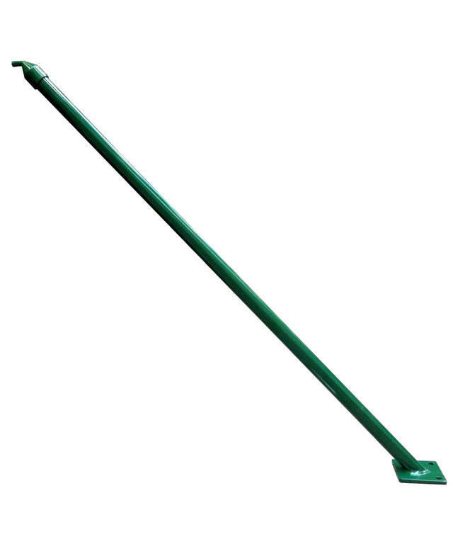 Die Rohrstreben auf einer Fussplatte stützen die Eck-, sowie die Endpfosten ab und nehmen dabei die Querkräfte vom Pfosten auf. Dank der Fussplatte kann der Pfosten direkt auf einen festen Untergrund verschraubt werden. Durch das feuerverzinkte und zusätzlich Farbbeschichtete Material, ist der Korrosionsschutz garantiert.