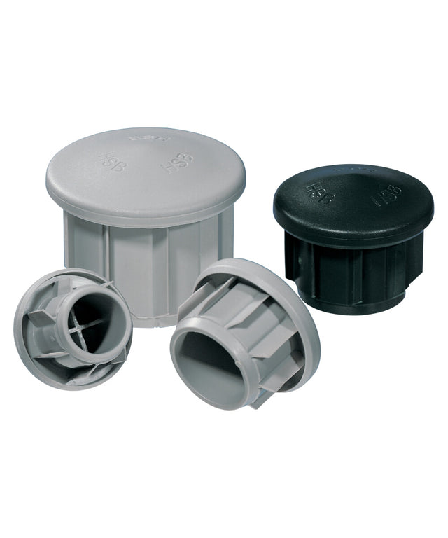 Kunststoffabdeckung für einen Rohrpfosten, in grau oder grün. Robust und Farbecht über lange Zeit.