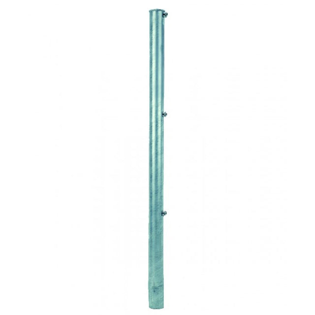 Der aus feuerverzinktem Stahl gefertigte Rohrpfosten dient zur stabilen und sicheren Montage des Zauns in einem Betonfundament. Durch das feuerverzinkte Material ist der Korrosionsschutz garantiert.