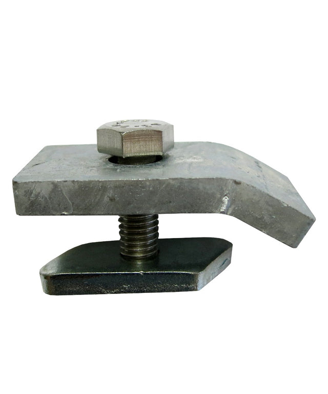 La bride de serrage sert à fixer le Traverse en acier profilée en "C" sur un profilé en T poteaux. Le galvanisation à chaud matériel garantit la protection contre la corrosion.