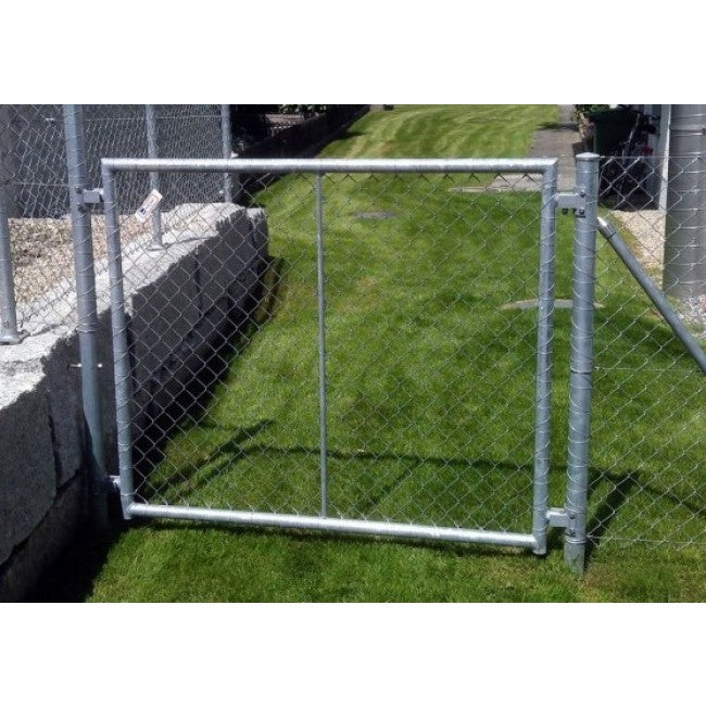 Champ de levage avec Poteau mét. rond à bétonner et ferrures, dispositif de verrouillage inclus, cadre tubulaire rond Ø 42 mm, remplissage avec Grillage simple torsion Galfan.