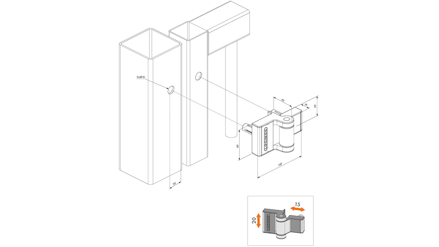 Le Puma Charnière est un Charnière compact avec un Boitier en aluminium thermolaqué. Flexible dans son type d'ouverture, grâce à son angle d'ouverture de 180° et à son réglage vertical et horizontal. Grâce à la fixation Quick-Fix, vous n'avez pas besoin de souder et le montage est très simple. Cette bande peut supporter confortablement jusqu'à 1 m et 60 kg.