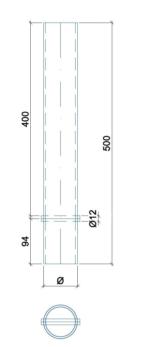 En tube de précision, avec butée, Convient à poteaux tubulaires amovibles Ø 42-89 mm.