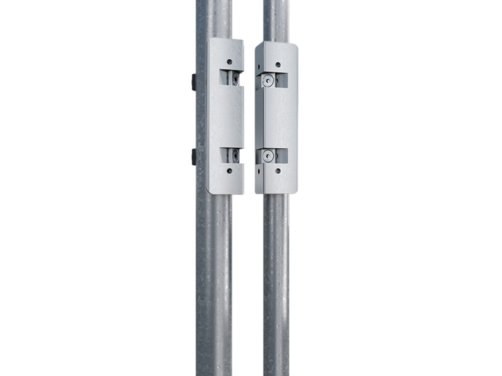 Support en aluminium haut de gamme pour le montage du ferme-porte Mammoth sur des profilés ronds. Les supports sont montés entre le ferme-porte et poteau. Le gabarit de perçage garantit un montage parfait, solide et simple. Les supports pour le Dino-Charnière sont inclus.