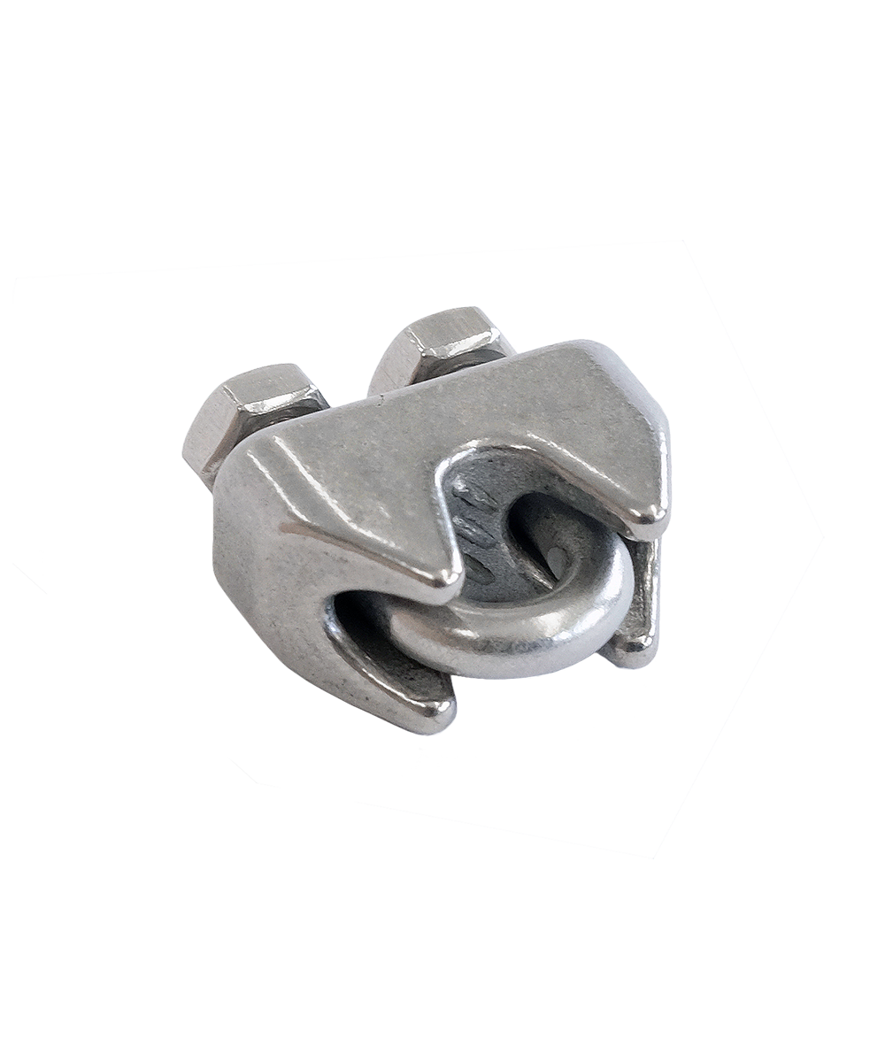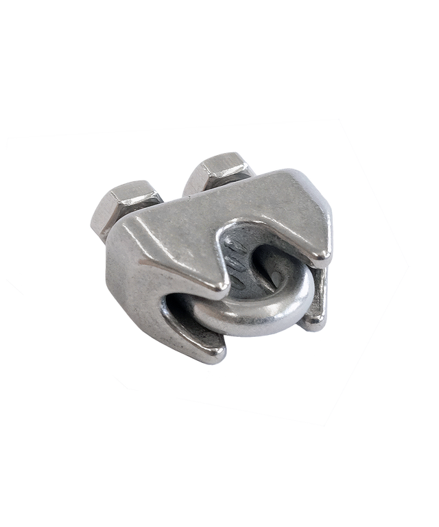 Für rostfreies Drahtseil mit 4 mm Durchmesser, inkl. zwei Muttern, pro Schlaufe drei Stück verwenden.