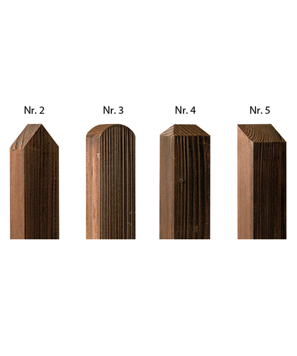 In Fichte braun druckimprägniert mit Kopfform Nr. 3. Andere Kopfformen auf Anfrage lieferbar.