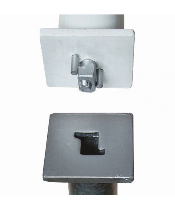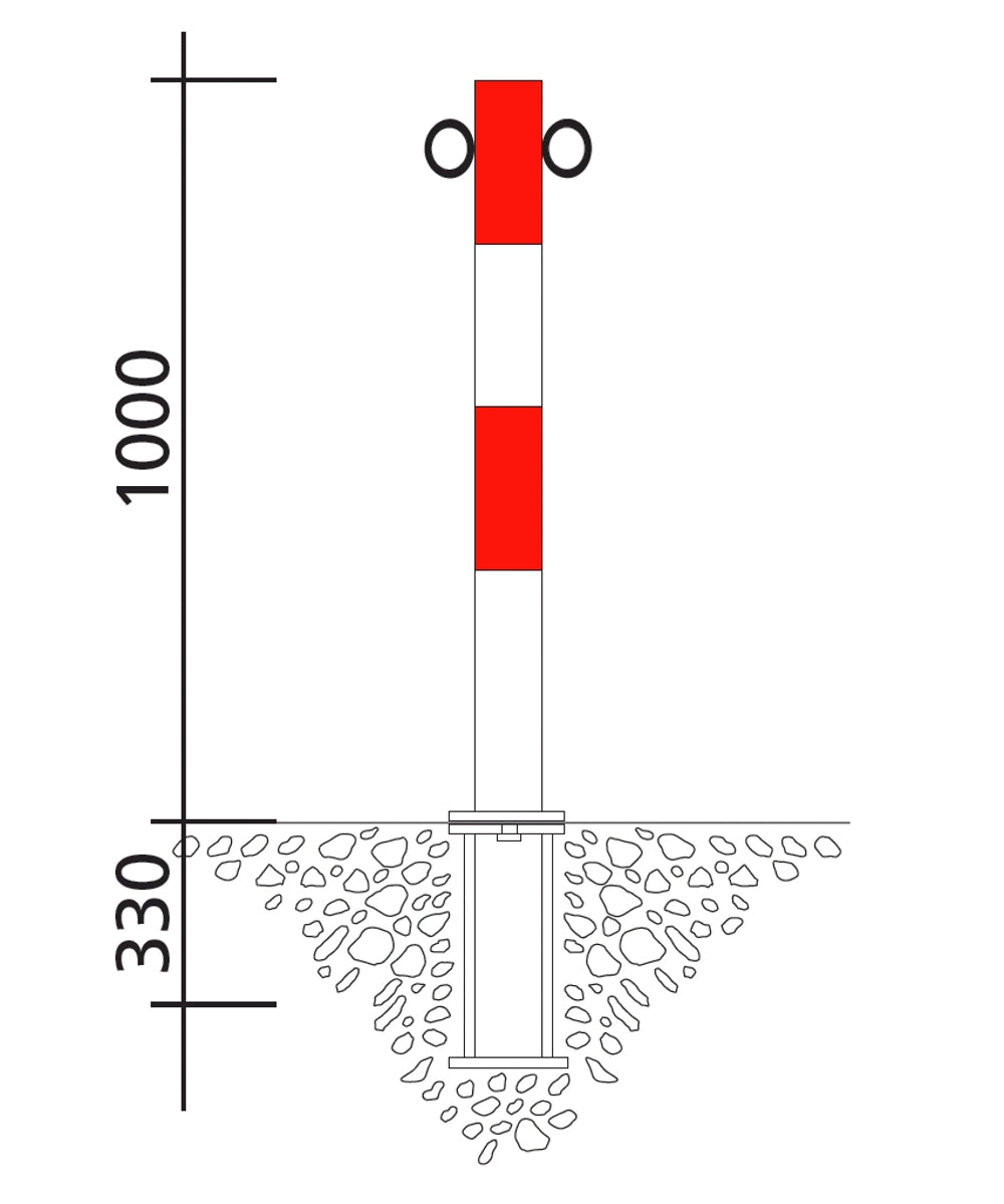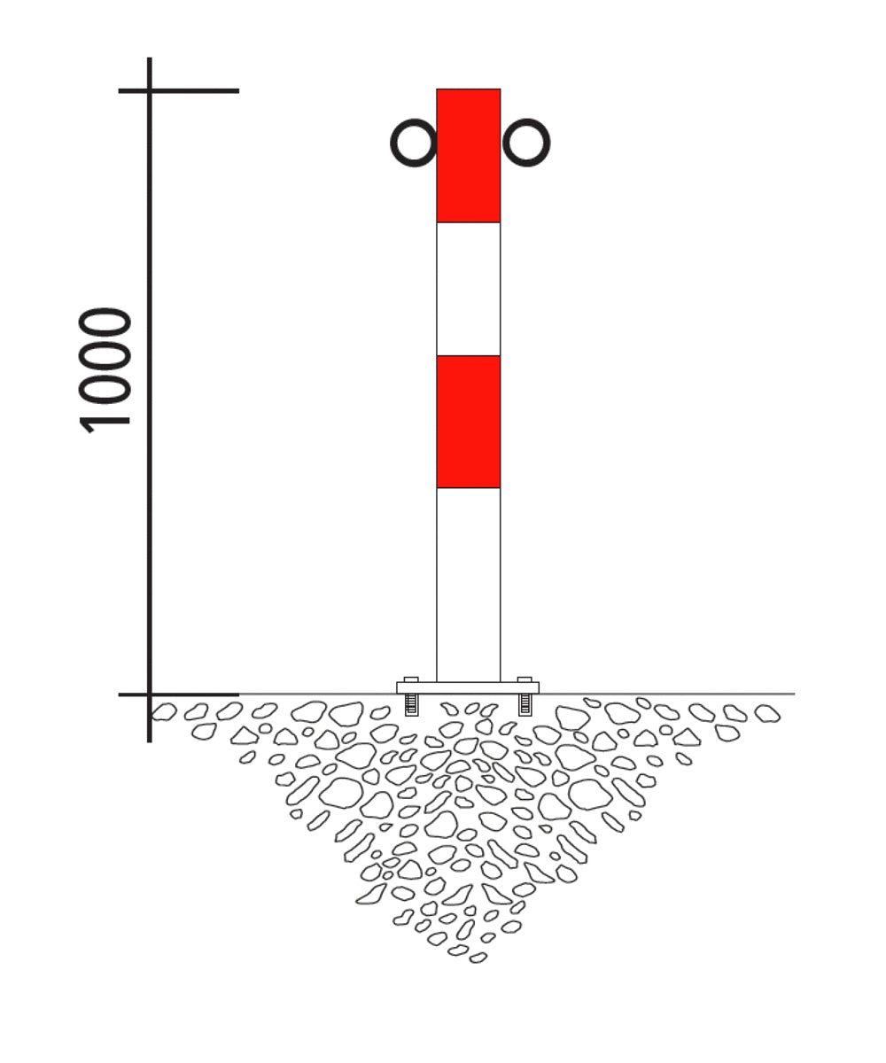 Sperrpfosten zum Abgrenzen von Fahrbahnen, Gehwegen, etc. Aus Stahl, feuerverzinkt und rot/weiss beschichtet, mit Spezial-Fussplatte zum Aufdübeln oder Bodenhülse zum Einbetonieren. Herausnehmbar mit Dreikantverschluss.