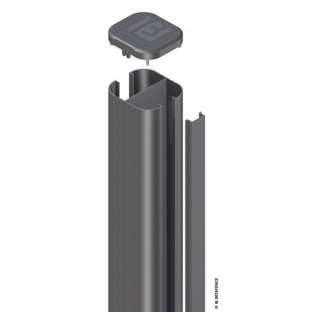 Der Pfosten hat offene Seiten, in die HoriZen und Dekorbretter für die Sichtschutzwand eingeschoben werden. Jedes andere Zaunfeld oder Füllung von 20 mm passt in den Pfosten. Es wird standardmäßig mit einer Pfostenkappe geliefert, um den Pfosten abzuschließen und ihn vor Regen und Schnee zu schützen. Es ist in 3 Höhen erhältlich und einfach zu kürzen, um unterschiedliche Höhen zu erreichen, der Aluminiumpfosten kann auch auf einer Bodenplatte installiert werden.